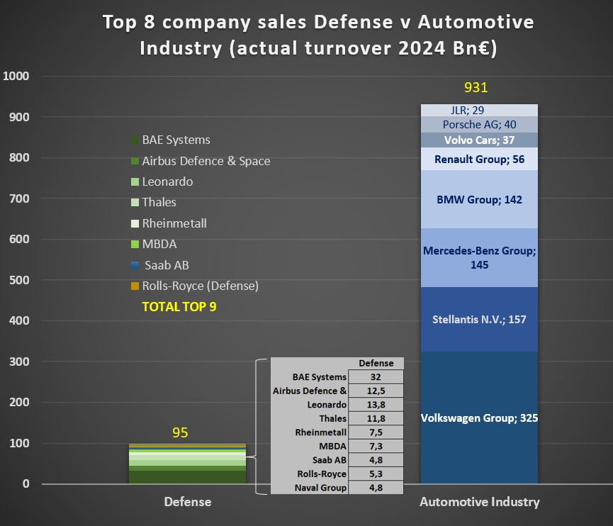 Yet, all in all, even with ~25% of 3% of defense budget put on equipment and R&D (NATO recommendation is > 20%) this will only be a small % of GDP or so vs 7% or so for automotive.
