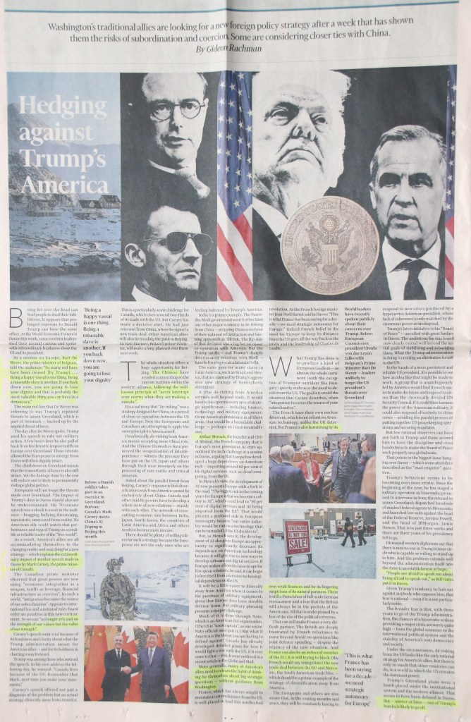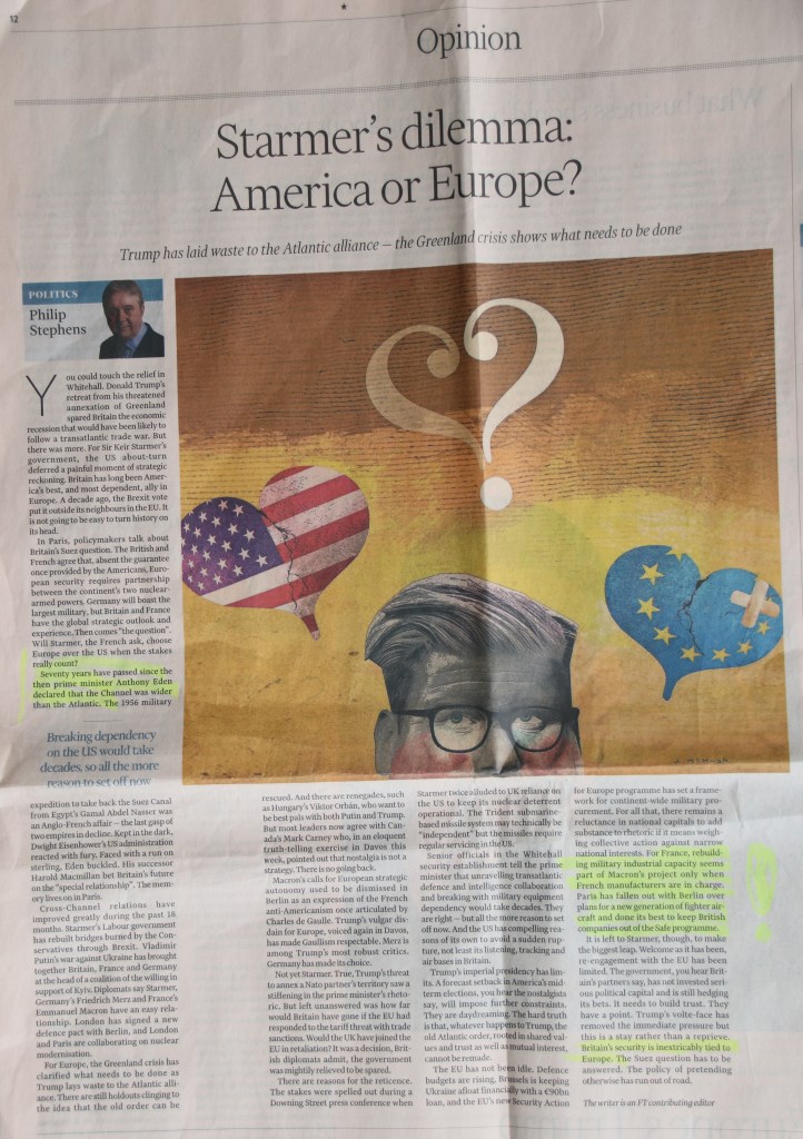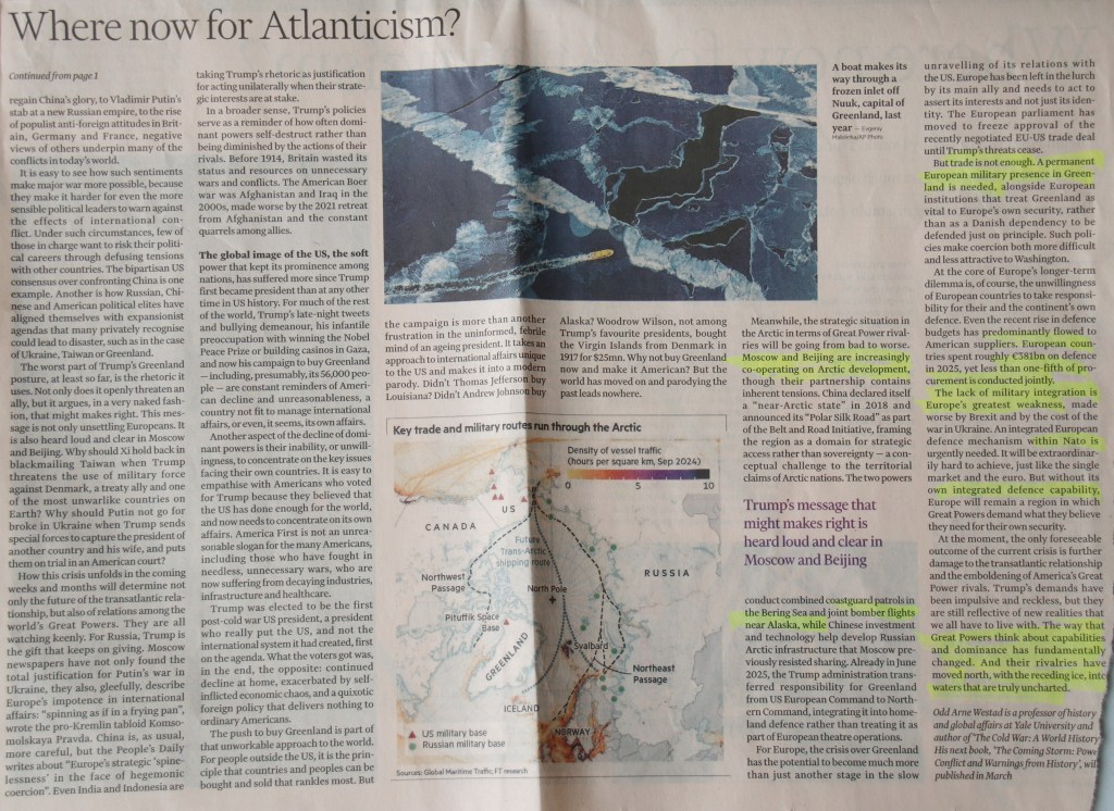 What a week it’s been. And after having digested it and read tons of bright articles, I come here with two specific take aways: first one is for France to open the door for UK to rejoin the European family, second is to remind US to not be obsessed by Greenland and not overlook threats from Russia and China on Alaska’s side, whilst Europe needs to build serious plans to take care of Groenland.