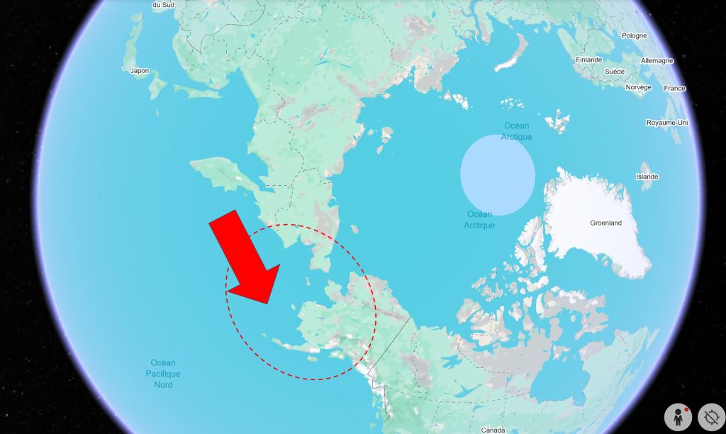 The Google Eart view below (thank you Google) reminds us of the obvious: USA main artic connection with Russia, and China behind, is on the right (West), not on the left (East) side!
